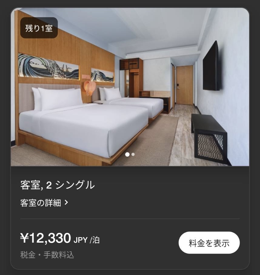 今回、私たちは、最もグレードの低い「客室,2シングル」のお部屋を予約していました。