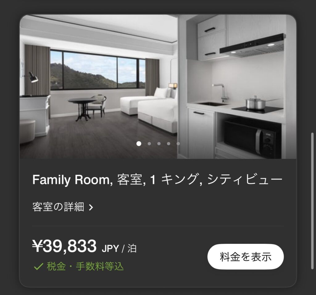 「Family Room」タイプの広いお部屋もあるので、子連れの旅行でも安心だと思います。