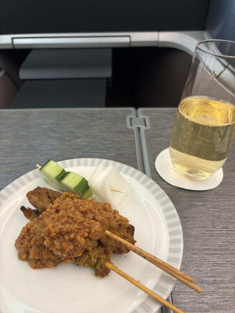 味噌っぽい味のソースとピーナッツの風味が美味しいです。ここでシャンパンをもう一杯オーダーしました。