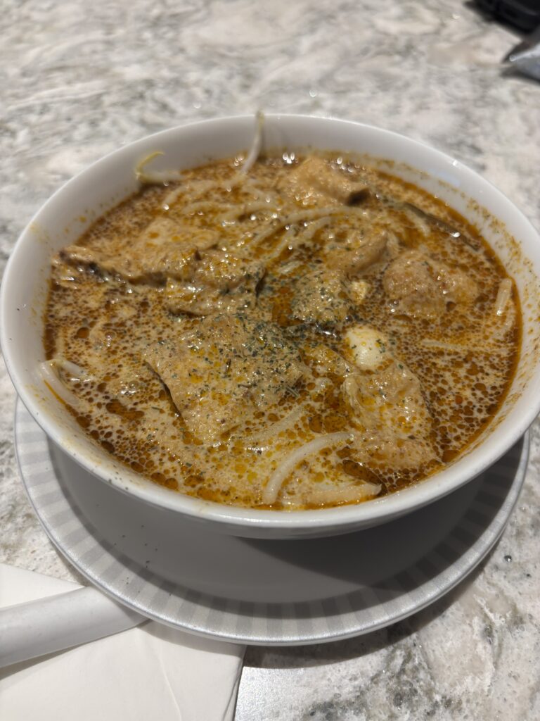 スープはスパイシーで美味しかったですが、米の麺が好みではなかったです。