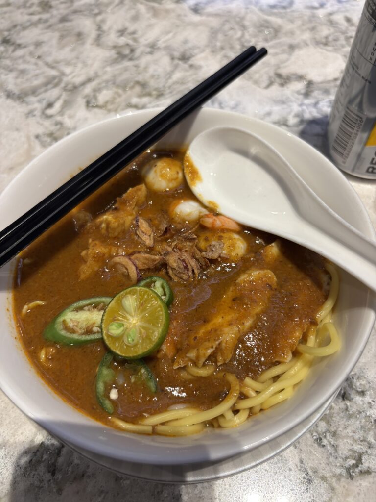 もう1品ヌードルを頼みました。こちらは小麦麺で、スープはカレーみたいな味。他にも点心系のミールやカレーなどが充実していました。さすが多国籍国家シンガポール!