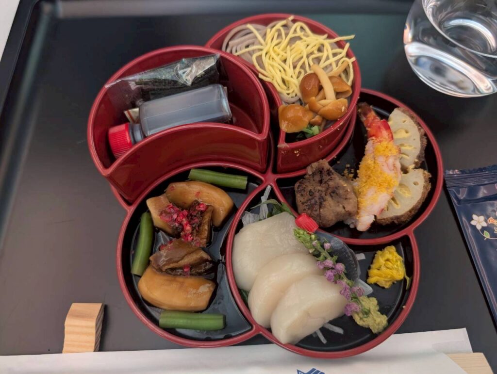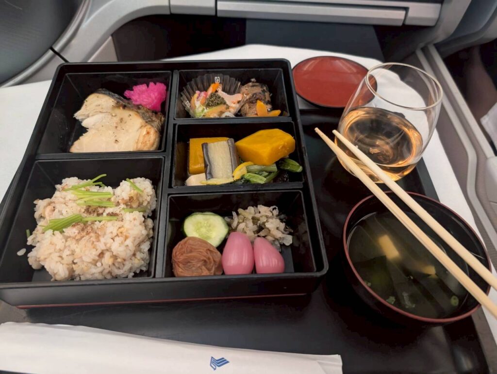 続いてメインのお料理!今回、私たちは、機内食を事前予約できるサービス「Book The Cook」を利用し、和食を事前オーダーしておきました。