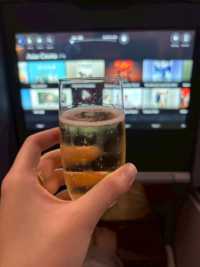 オレンジジュースかシャンパンから選ぶことができ、酒カス夫婦である私たちは、もちろんシャンパンを選択。