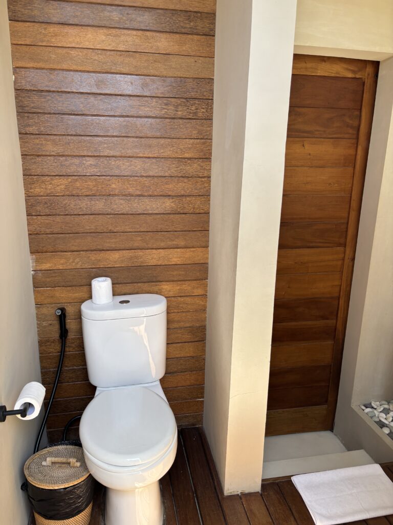 オープンエアーなトイレは初めての経験で、最初は新鮮で楽しかったのですが、夜中に蚊の襲来を気にしながら用を足すのはかなり嫌でした笑