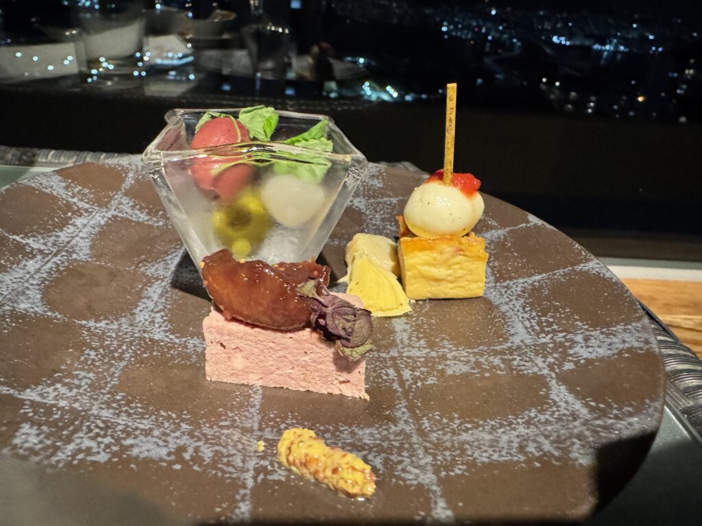 半分オープンエアーなスペースがあり、こちらでお酒を飲みました。夜景が綺麗です。